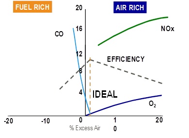 燃燒效率是燃燒器燃燒燃料能力的一種指標。煙氣中未燃盡的燃料COe(未燃碳)及過剩空氣(含氧)量是評估燃燒效率好壞之指標。