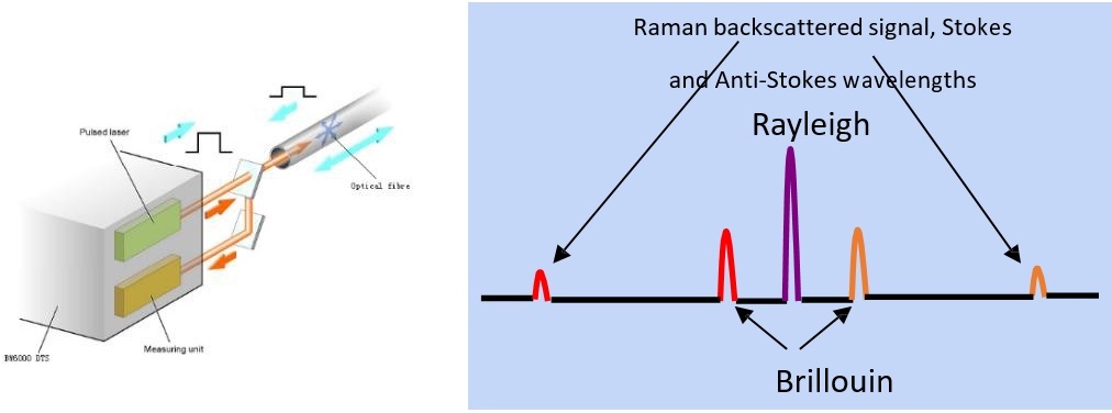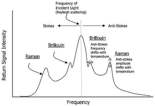 光纖由摻雜的石英玻璃製成,當鐳射光在光纖中傳輸時,光粒子(光子)和分子電 子之間發生相互作用,拉曼散射出現在光纖中。