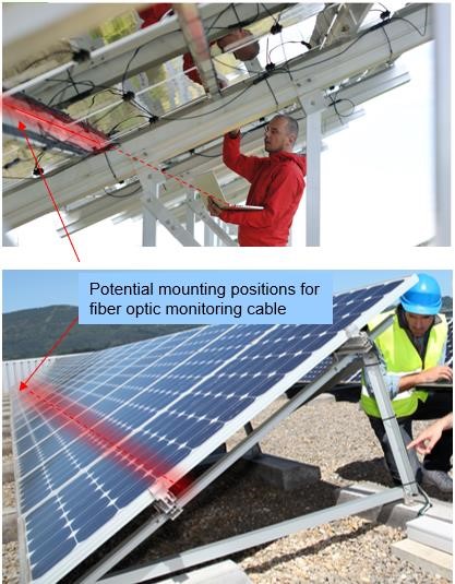 • 完全分散式覆蓋。沿電纜的整個長度每 1m 的測量點都可以通過光纖感電纜安全地監控裝置中的每片面板溫度。