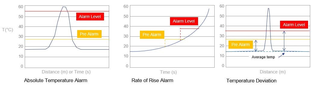 使用基於 DTS 的光纖 LHD 系統,可配置三種不同類型的警報。
