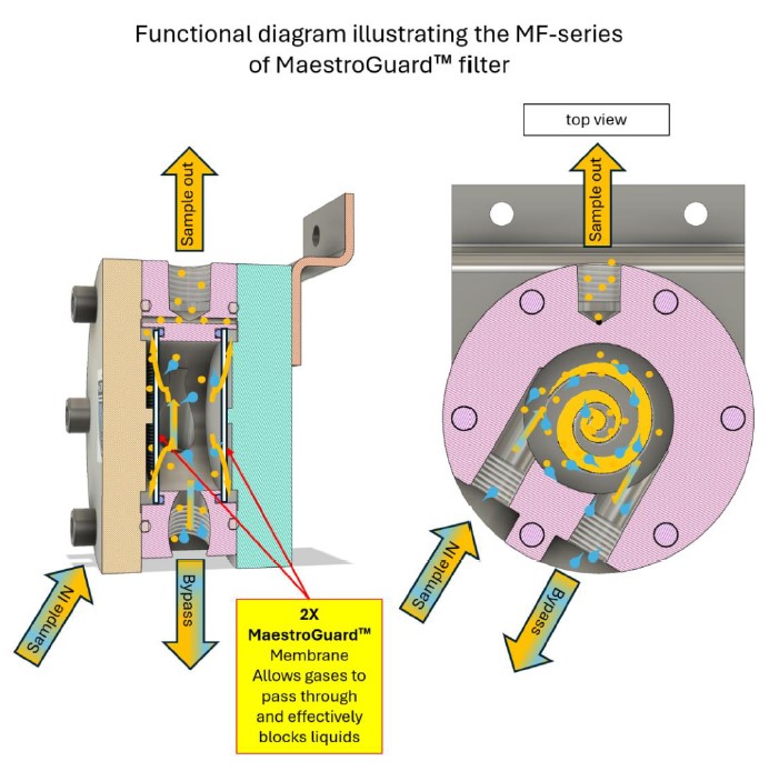 MMF-80 MaestroGuard™ 過濾器是⼀款專為製程氣體分析設計的緊湊型⾼效能過濾器,應用於樣品前處理系統。其結合了平⾏多膜過濾、機械粒⼦預分離及⾃潔旁通排⽔技術,從⽽實現卓越的流體處理能⼒、延⻑過濾器使⽤壽命,並⼤幅降低維護需求。