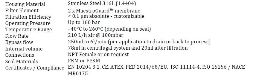 ➢ 延⻑濾芯壽命且維護需求極低離⼼預分離與⾃潔旁路流的結合,有效防⽌膜污染與飽和,⼤幅降低維護頻率。